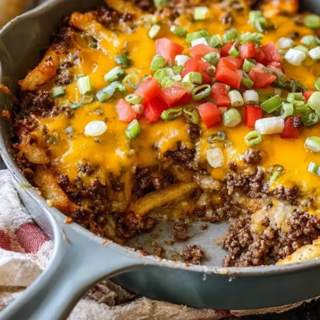 Loaded Cheeseburger Fry Casserole