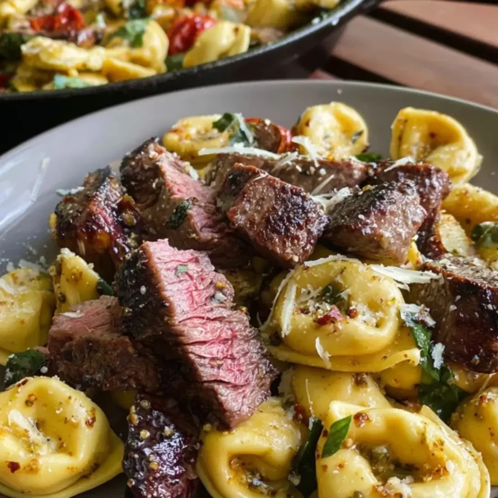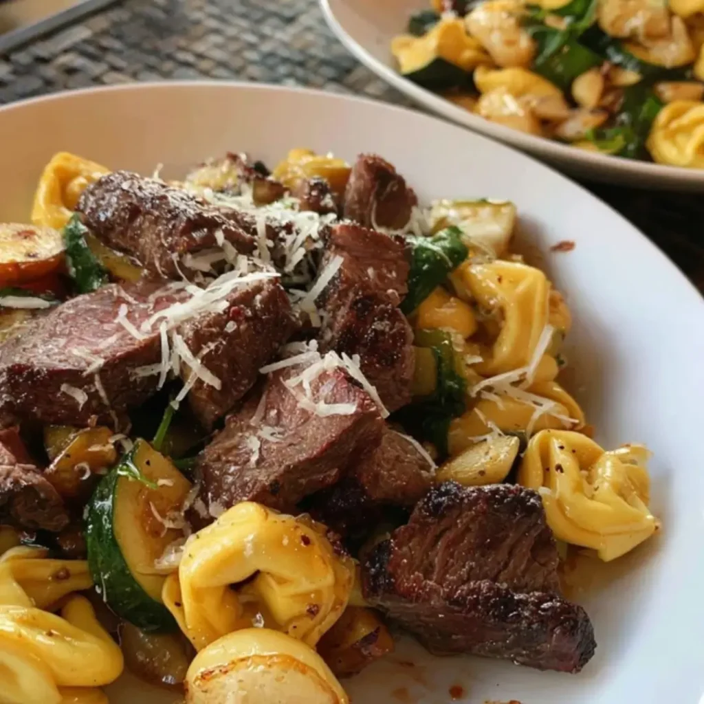- Add the fresh spinach to the sauce and cook, stirring, until it wilts, about 1-2 minutes. Then, gently fold in the cooked tortellini and seared steak bites. Toss everything together until thoroughly coated and heated through.