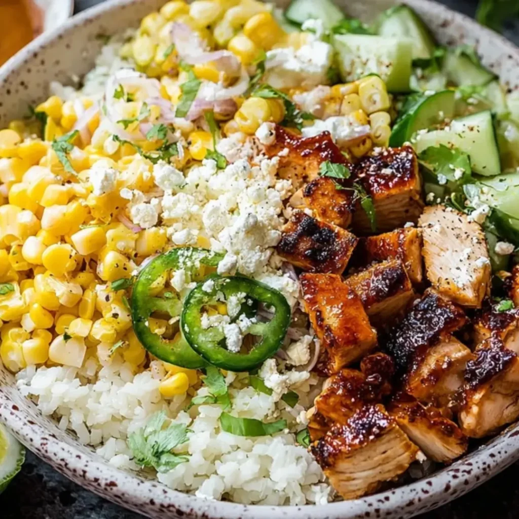 I remember my grandmother, with flour dusting her apron, telling me that the secret to any good meal, sweet or savory, was the love you poured into it. While our afternoons were usually spent perfecting pie crusts or whipping up fluffy cakes, the spirit of thoughtful preparation and gathering around a delicious meal was always present. This street corn chicken rice bowl, with its layers of tender chicken, zesty corn, and creamy sauce, embodies that same wholesome philosophy.