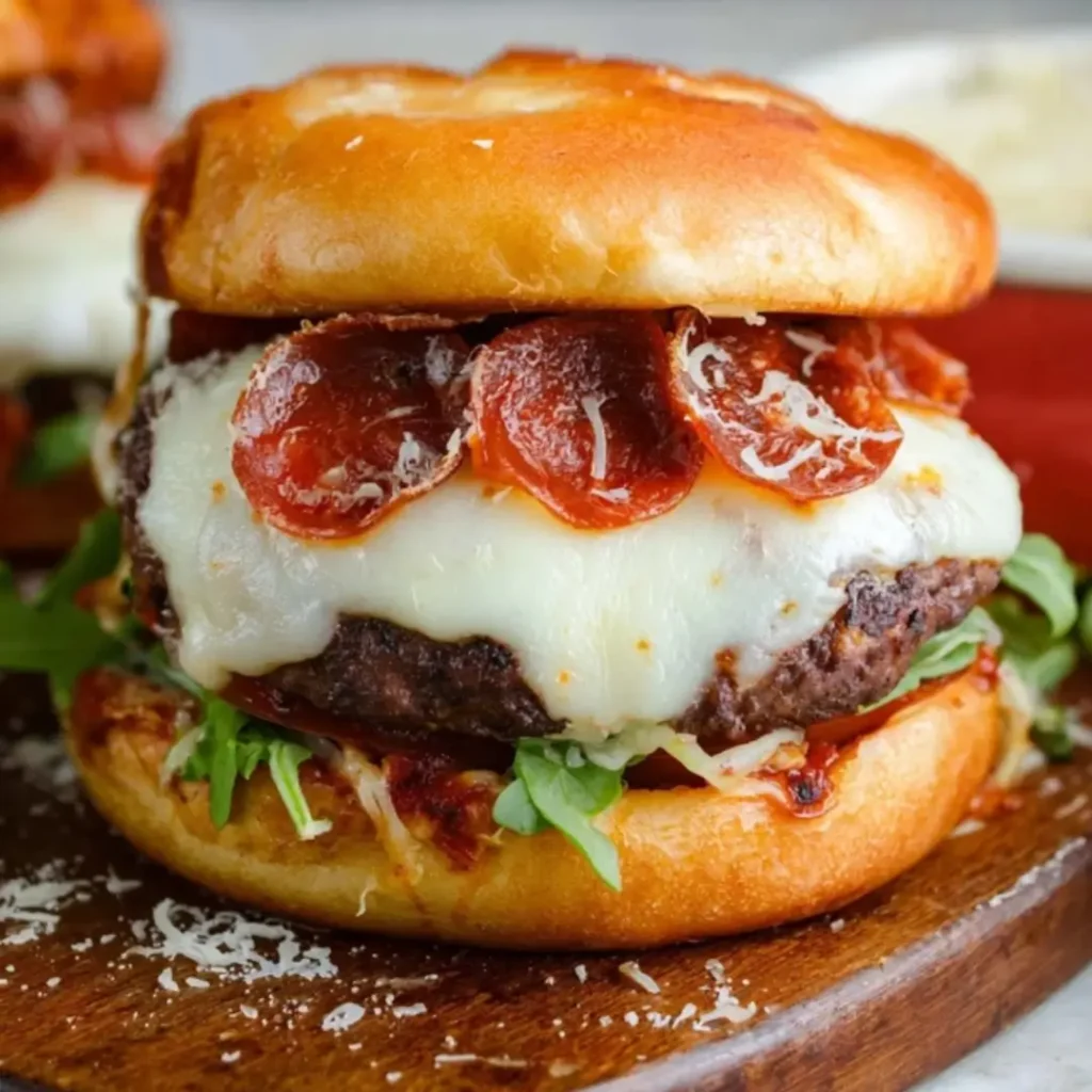 ![A juicy {{ $('Fetch Recipe Data').first().json["Main Keyword"] }} with melted mozzarella, pepperoni, greens, and marinara on a toasted bun.](https://tastytablekitchen.com/wp-content/uploads/2026/03/pizza-burgers-.webp)