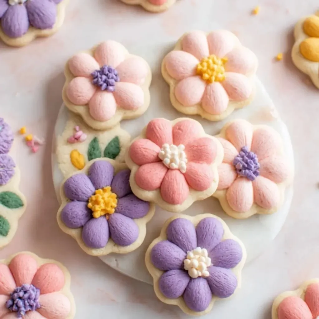 ![Pastel {{ $('Fetch Recipe Data').first().json["Main Keyword"] }} with piped pink and purple frosting petals.](https://tastytablekitchen.com/wp-content/uploads/2026/04/spring-flower-shortbread-cookies-.webp)